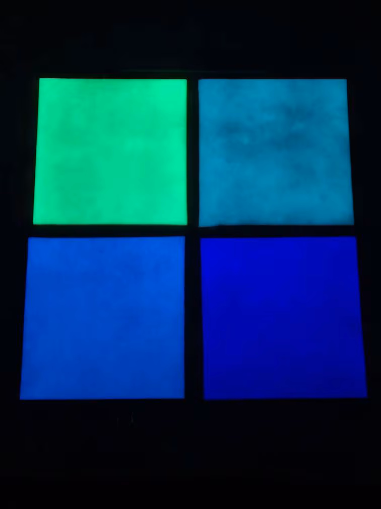 Glow in the dark Glass Sheets: Green, Aqua, Blue and Purple (5×5 inches)